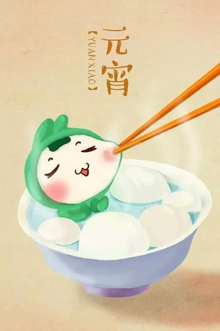 除此之外,美团的海报将吉祥物很好的融合在了一碗汤圆中间,用筷子夹起它的小脸,好像有点萌。