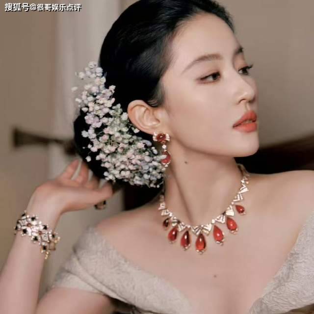 复古盘发点缀满天星花饰的妆发设计,让她被赞“梦回《金粉世家》白秀珠”。这种巧妙的设计既展现了复古韵味,又与礼服和珠宝相得益彰。