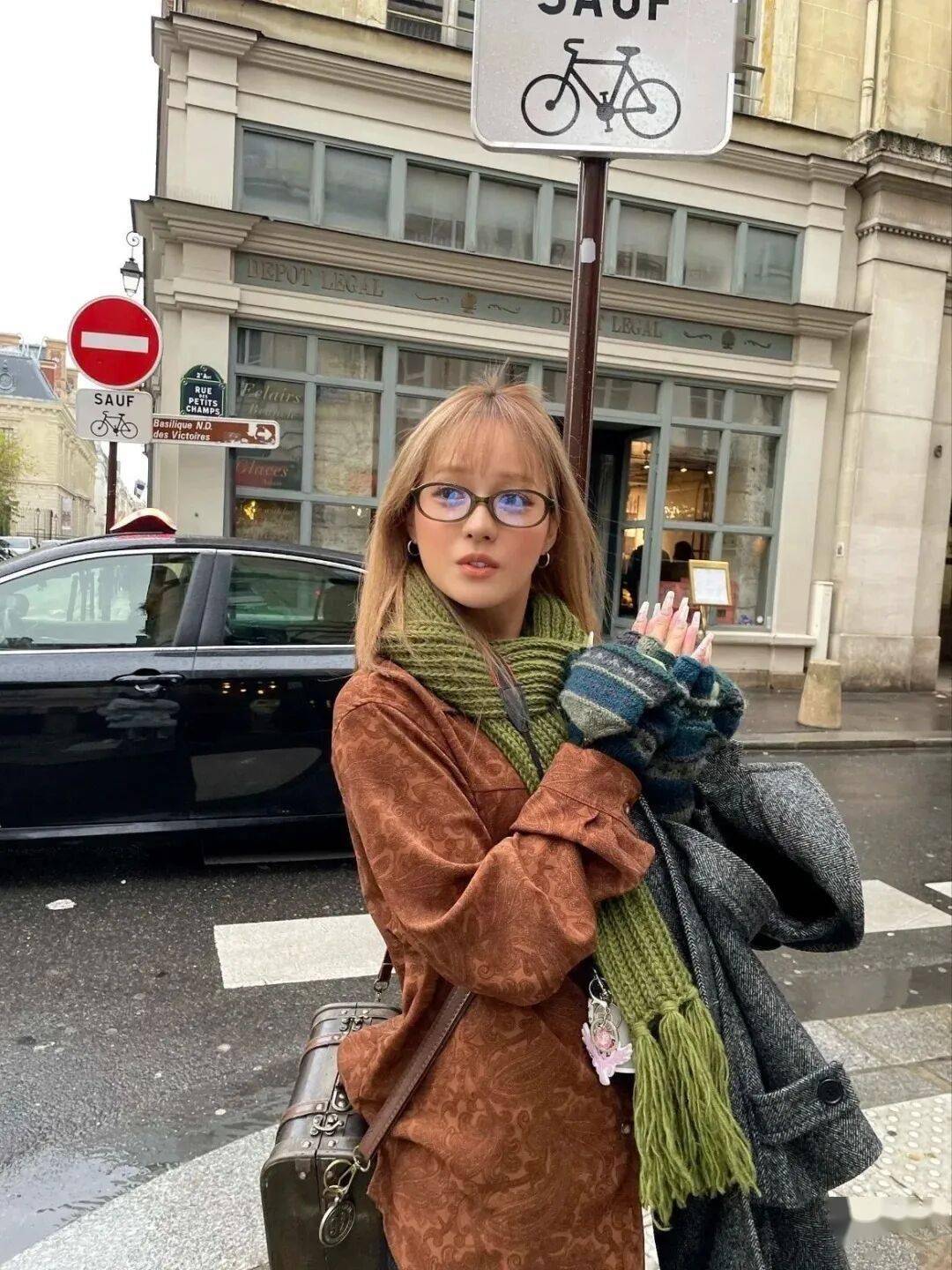 韩团XG成员JURIA的这身眼镜造型,则恰到好处的呈现出「文艺青年版Hot Nerd」的魅力精髓,在复古撞色中加入温暖的针织元素,来自品牌Hot Futures的墨绿色圆框眼镜加深了温润的书香气。