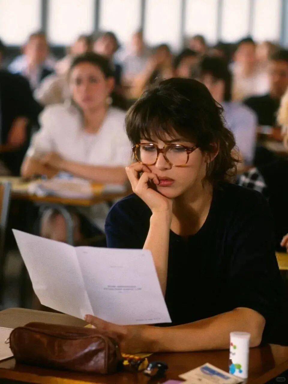 谈及法式知识分子的时髦穿搭,于1988年上映的经典老片《心动的感觉》时至今日仍显权威。由苏菲·玛索饰演的女教师凡伦黛浑身散发着慵懒且随性的书卷气,玳瑁大框眼镜的加入让整身日常造型更添少女的灵动俏皮。