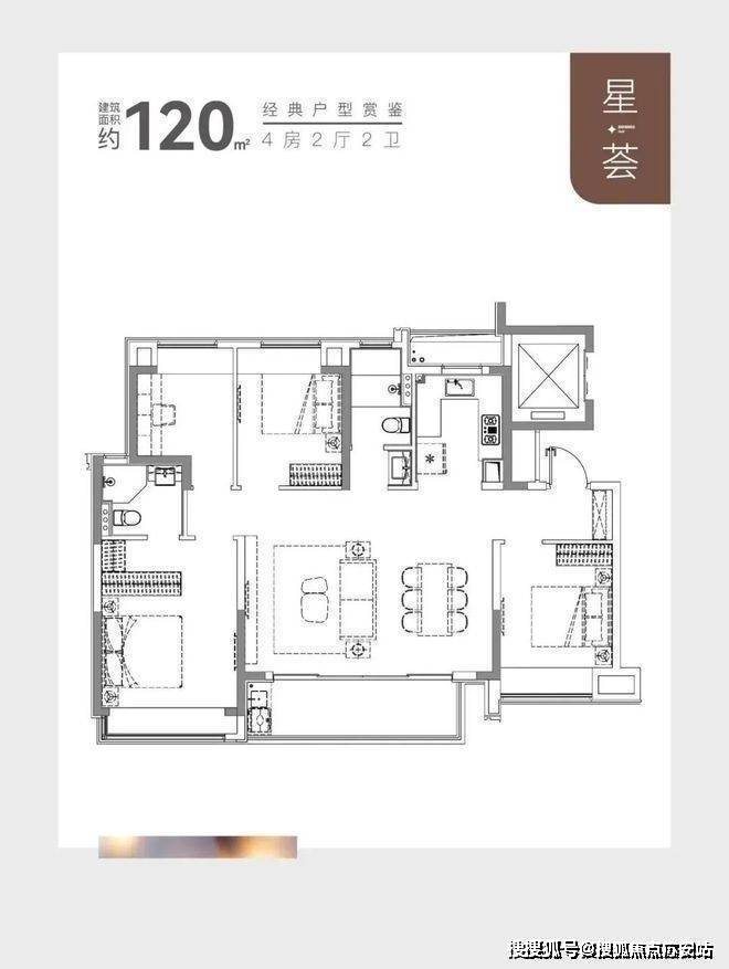 建面约120㎡的产品,市面上大多都是3房,但大华星曜做了4房的设计,实用性非常出色。